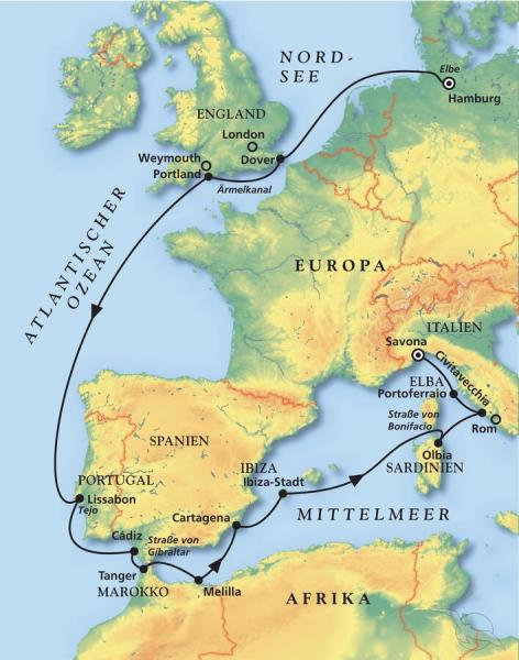 Begleiten Sie uns auf dieser Traumkreuzfahrt mit MS Artania in den europäischen Süden, wo der Sommer immer ein bisschen länger dauert. Komfortabel reisen Sie an Bord, umsorgt und bestens unterhalten von der Crew, über England Richtung Atlantik nach Lissabon und durch die Straße von Gibraltar ins Mittelmeer, wo mediterraner Flair zu jeder Zeit gut gelaunte Stimmung verspricht. Hier geht's zur besten Kabinezur BuchungsanfrageAn- und Abreisearrangement ab/bis Luxemburg
